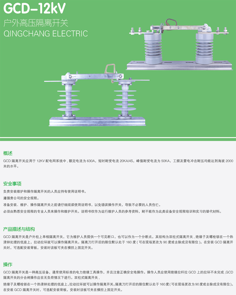 GCD-12kV戶外高壓隔離開關(guān)